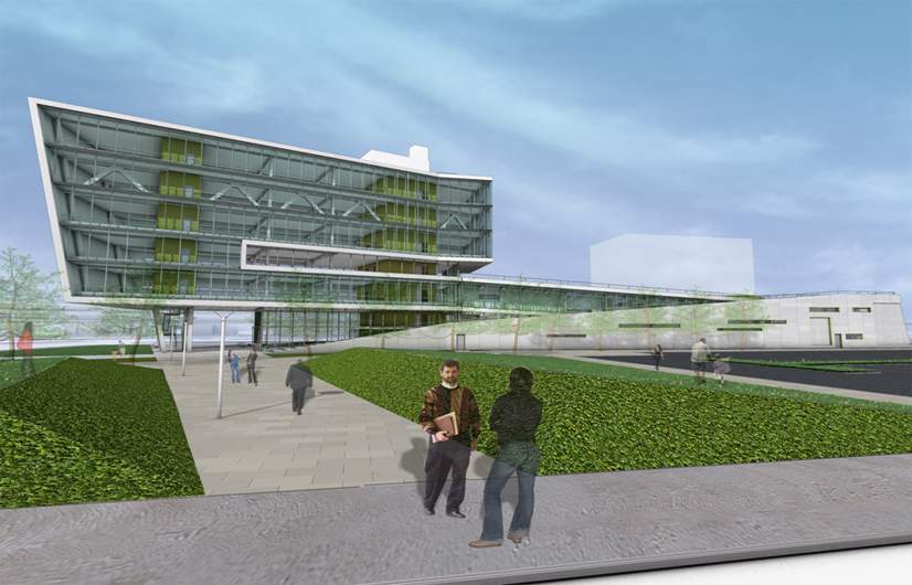 建物的提出的形式和風景意欲,因為將對連通性走廊在街市西勒鳩斯和西勒鳩斯大學之間的綠色都市干預。