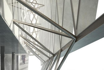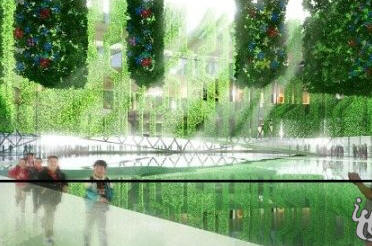 展館主要被新混凝土製成的網狀結構所包覆,網狀的結構輕盈的呈現,就好像漂浮在空中.不過也正是那樣的結構,一下就捕捉到我的眼,主要的佈置是庭園,有水池,花園,跟美食,晚上還有燈光,讓人體驗感性的生活.