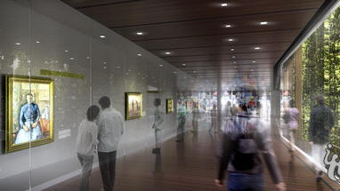 展館被一種新型混凝土材料製成的線網“包裹”,彷彿“漂浮”於地面上的“白色宫殿”,尽显未来色彩和水韻之美。館内,美食带来的味觉、庭院帶来的視覺、清水带来的觸覺、香水带来的嗅覺以及老電影片段带来的聽覺等感性元素,將帶领參觀者體驗法國的感性與魅力。