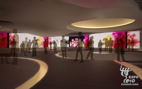 新加坡館彷彿一個即將開啟的音樂盒,參觀者還未入館,就能聽到來自館內的悅耳音樂。內部形狀各異的展廳,通過緩