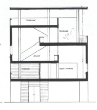 柯比意第一個方案,有著複雜的垂直性的斷面,造成兩個高程不同的空間並予以挑空,形成空氣的循環,以對抗當