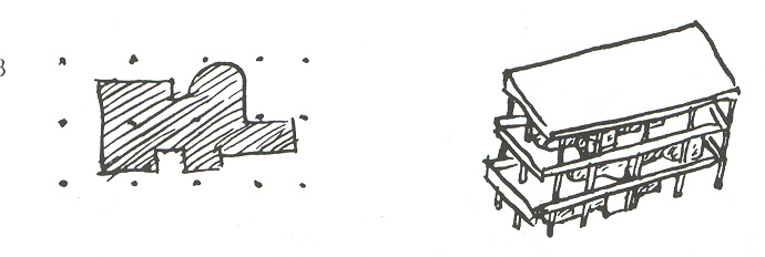 方法,而這就是第二個方案了。他利用陽台和平屋頂來做為對應日晒和熱風的方法。