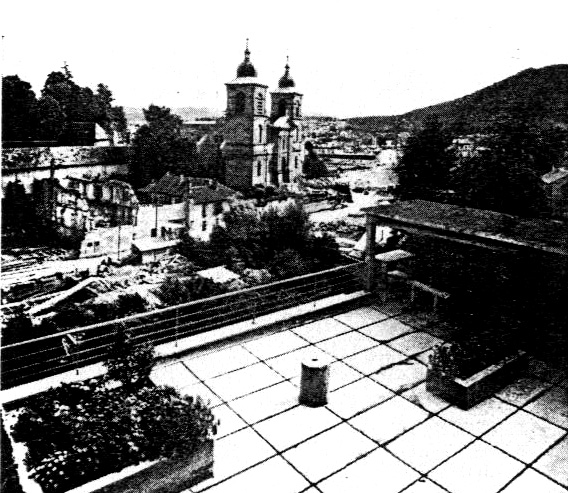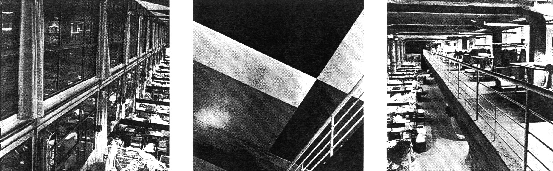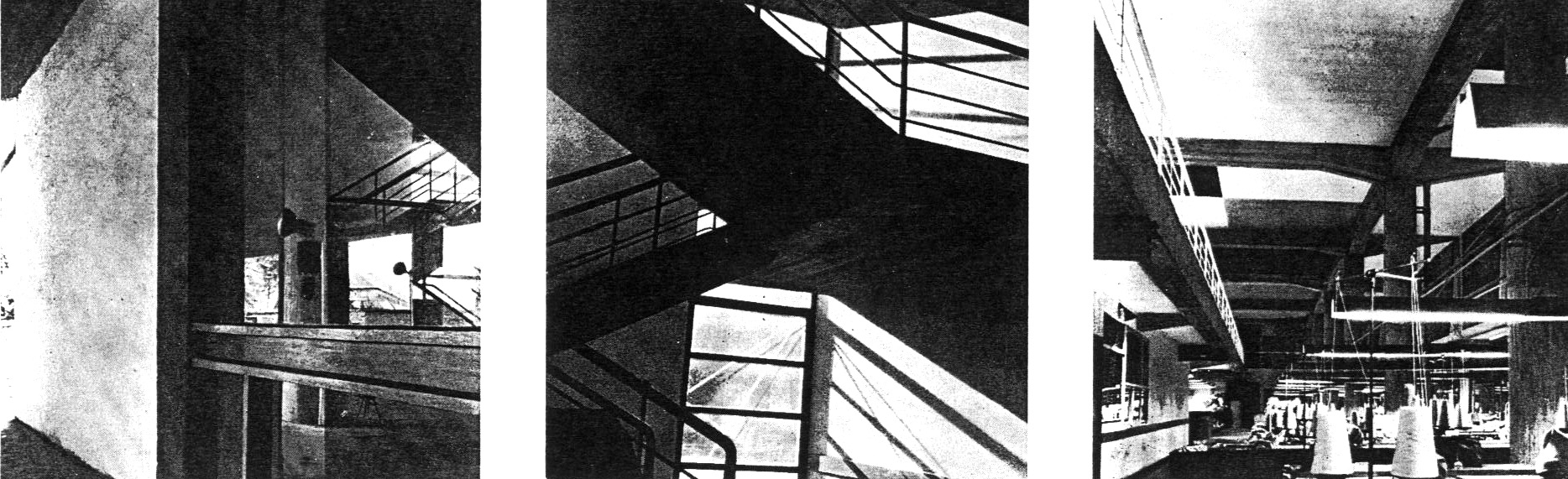 從工廠屋頂平台看出的景觀 停機車的倉庫 加工室的二層挑高空間