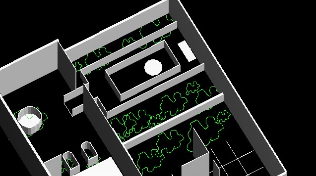 屋頂花園,假想為被房屋遮住的地面之復原(圖右)。