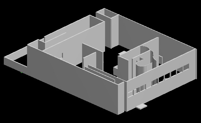 應用來植物緩和量體與地面的關係(二樓及四樓)。藉由樓梯聯接花園(一樓連至二樓),達到室內外空間的呼應效果。立面上的水平窗帶有支配立面的平衡性(各樓面),取代重覆的垂直窗戶,並消除有礙立面統一的靜態元素。立面具有關鍵性的界線,界定兩種完全不同的空間。連續的服務階梯(平面圖左下坡道)是內建的一個狹窄隔間,自由的牆和不間斷的樓梯,是形成〝散步建築〞的形式。