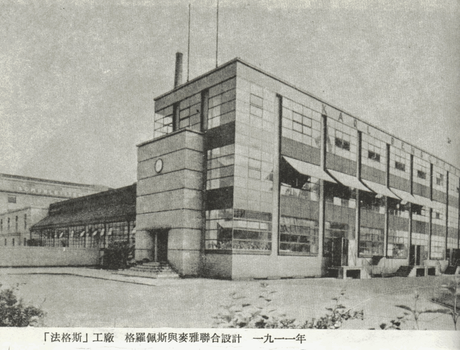 平面配置和量體型態依生產上的需要而產生,平面打破了對稱的形式,平屋頂沒有挑簷,他的設計顯然比貝倫斯為通氣公司所做的設計更先進,轉角部位利用鋼筋混泥土樓板的懸挑性能,不用任何支撐,立柱縮減到狹長的鋼帶,這種手法以後被重複的模仿。在長約40公尺的牆面上除了支柱,全是玻璃窗與金屬板做的窗下牆,輕薄建材組成的外牆改變了磚石沉重的形象。與過去以往的工廠建築截然不同。