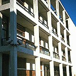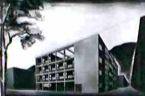 1.現代建築的特徵:模矩化的柱列關係、以簡單的梁柱構架當裝飾、忠實的反映內在空間。