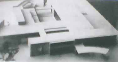 雖然主要入口在中央方向偏南,但這件作品隱約還是可以發現依軸線配置的關係:對著入口的是一條走廊,所有的空間依附走廊兩旁配置。這個建築物中最特別的就是圍塑出〝中庭〞空間(圖5),這樣的設計方式,似乎是從當地傳統的空間模式演變而來,後來的〝Casa