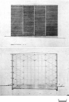 圖2 羅馬考古基地保護所立面圖與剖面圖