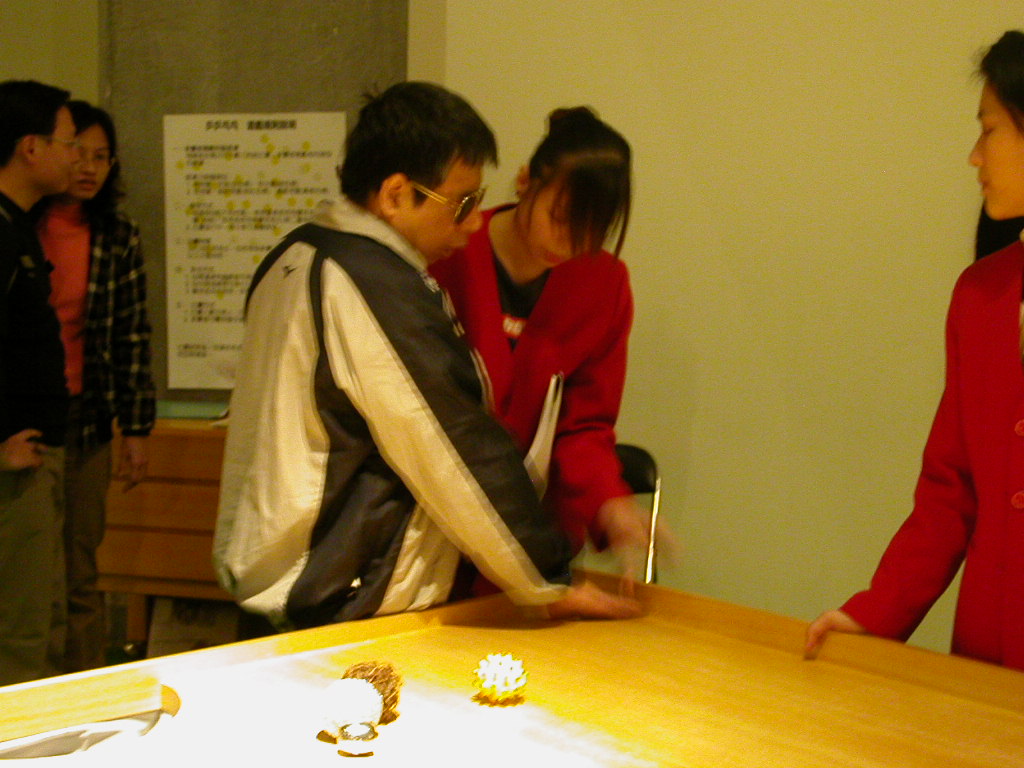 「我在北美館受邀承做此次參展作品後,先是到啟明學校去做實地訪問,以及實際去體驗盲胞朋友們所真正使用的<乒乓球>