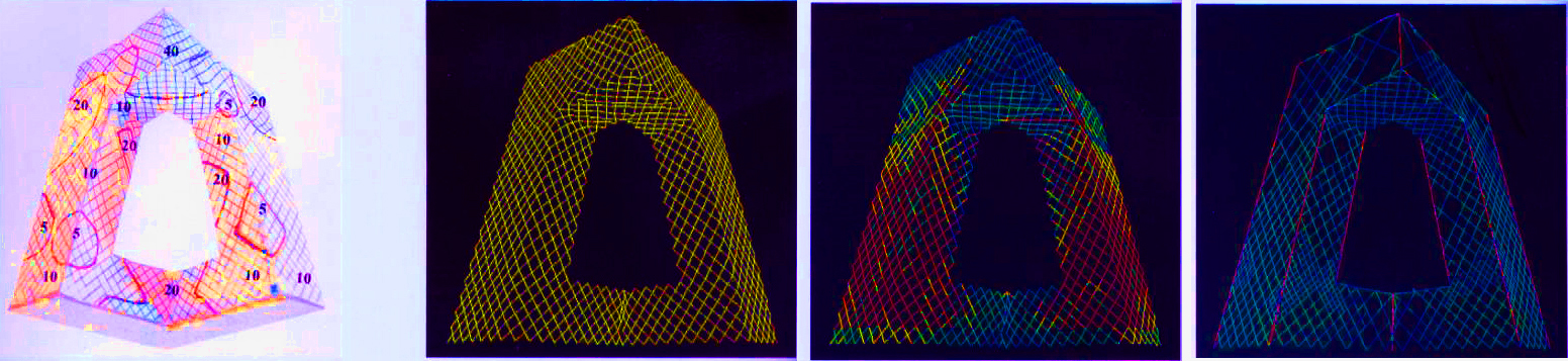 體一網格的方式計算其受力關係, 之後再隨著應力大小的關係改變網格的疏密大小.