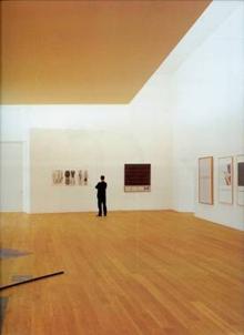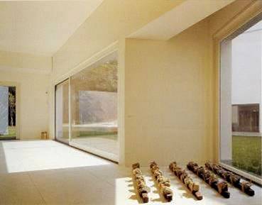 展示空間的立面開窗,試圖結合將周圍的環境(陽光、空氣、水),打散室內光線的抽象理念,但仍維持空間的穩定性