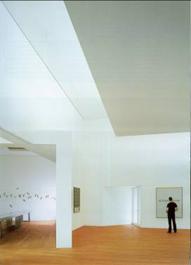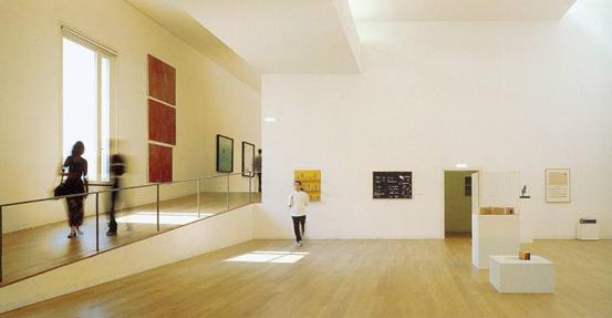 左:懸吊式天花板漫射著強烈的南歐陽光,照亮了畫廊空間