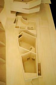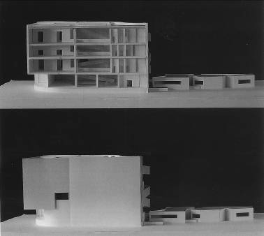四個不規則的量體散落在狹長的基地上