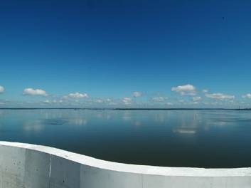 線性的展示空間留設部分的小開口,可以看到周邊的海景
