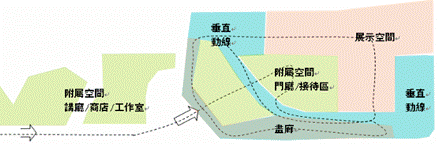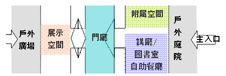 ¬ü³NÀ]³]¸m¤á¥~ªù´Y¡B³q¹Dµ¥ªº¡u¤½¦@ªÅ¶¡¡v¡A©ó¤º³¡±µ«Ý°Ï³]¸m¡u¸û¤j¤Ø«×ªºªÅ¶¡¡v§@¬°³q©¹®i¥ÜªÅ¶¡ªº¤J¤f¡C l