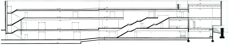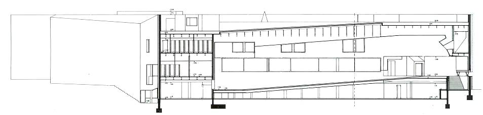 長向剖面(中央樓梯間通往各展區的循環動線系統)