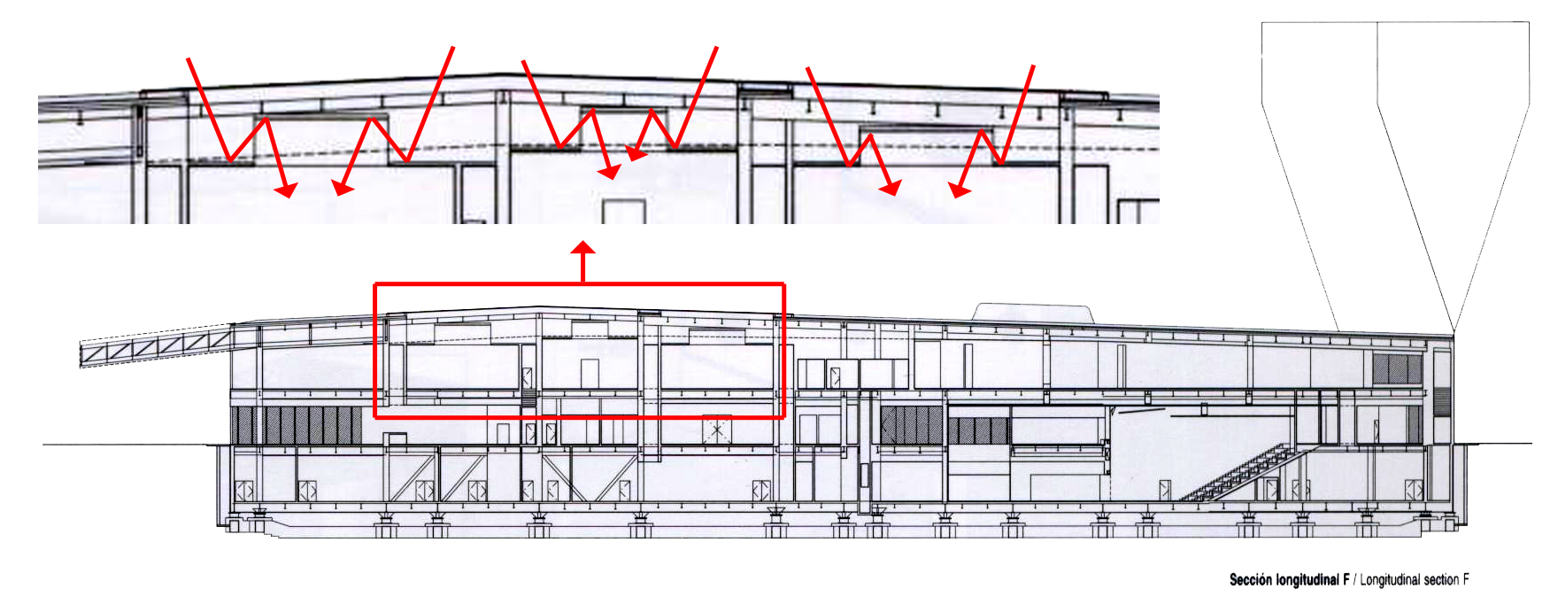 (2)提供不同的展覽空間回應不同屬性的藝術品 (屋頂自然採光剖面)
