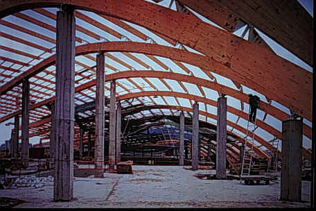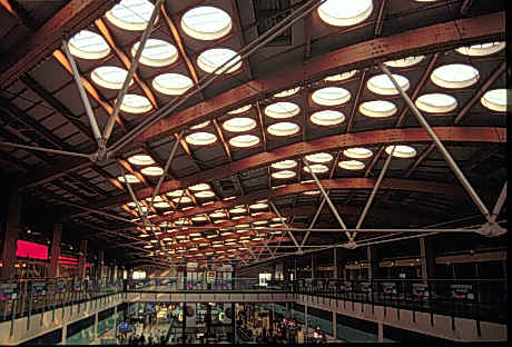 樓層的連接主要是利用中間部份的電扶梯作為垂直動線,在此建築物中結構應是它最重要與最精彩的地方,雖是20世紀的建築物但在它的主要結構體都是由木頭組裝而成的。像先以木頭骨架架設好再把飛船外殼穿上去。在形式與材料的選擇皆達到原先訂定的要大的購物商場與引人注目的外觀。金屬外殼是以每一塊30×80的金屬板所組合而成的。飛船形式是從未有建築師設計過的,且配合金屬外殼更是首見。 歷史意義: