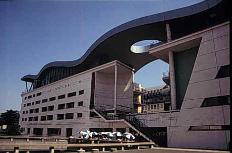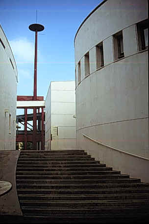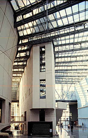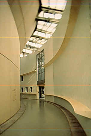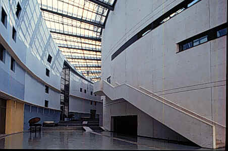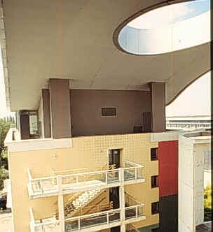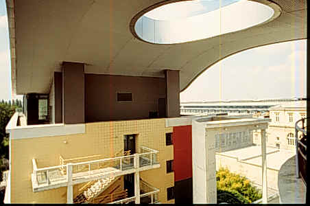 Portzamparc刻意營造的空間,我們看到了點、線、面、曲形的最原始建築美感,如果說西區代表一種靜態古典的空間美學現代版,那東區的動態配置如螺旋動力般的強勁張力,可說是九0年代之前的建築族群所未見的手法。