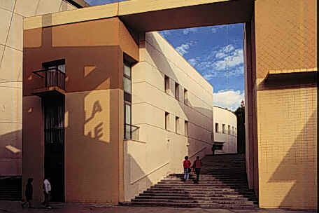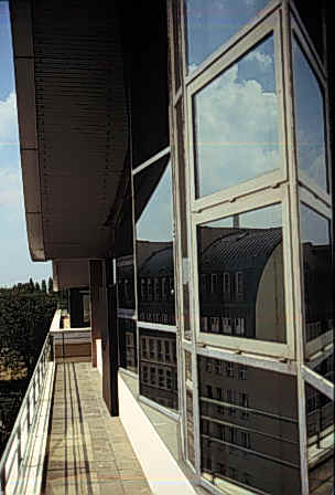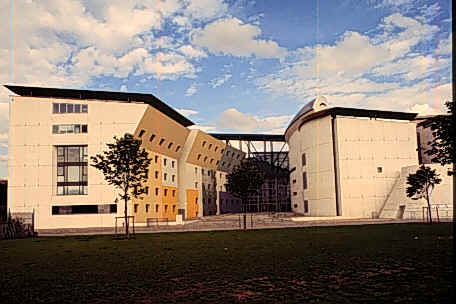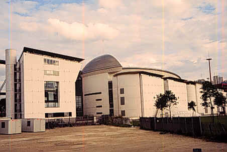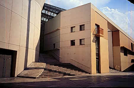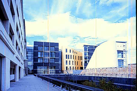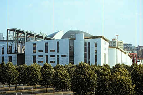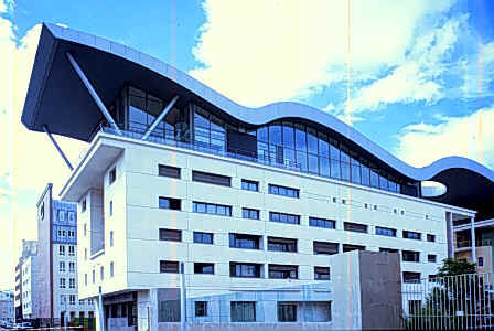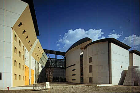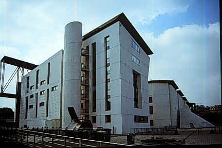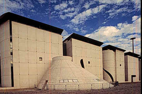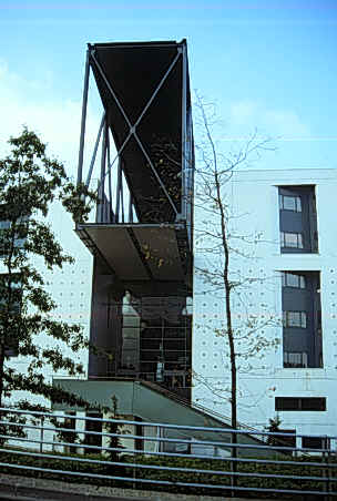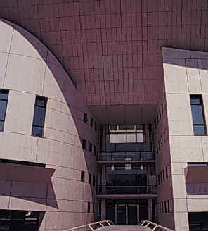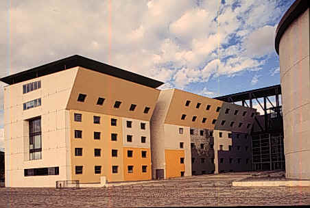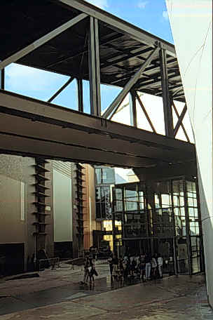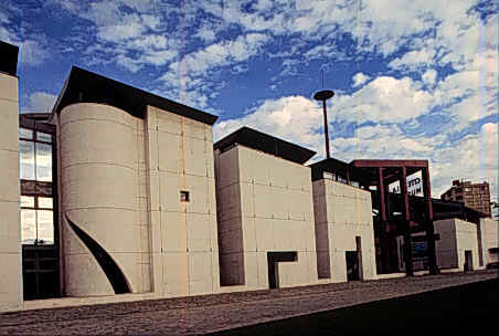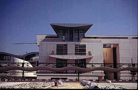 在九0年代La Villett基地南端的西區建築群處理有如古典都市的配置,基本上是靜態相對稱的、維持整體街道立面的城市特色,表現出建築師順應鄰近都市尺度及紋裡的態度,在量體的塑造上為一個波浪狀的大屋頂配置在一組組長方形建築群體上,一方面統御了整體配置計畫用屋頂作了一個收頭另一方面表現出音樂在建築上的視覺性。