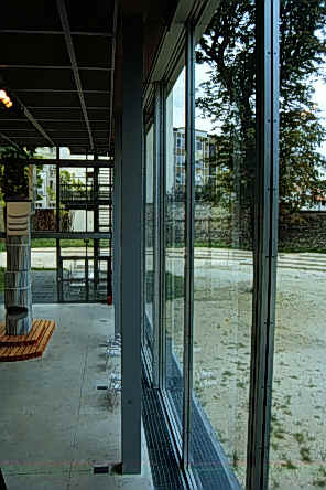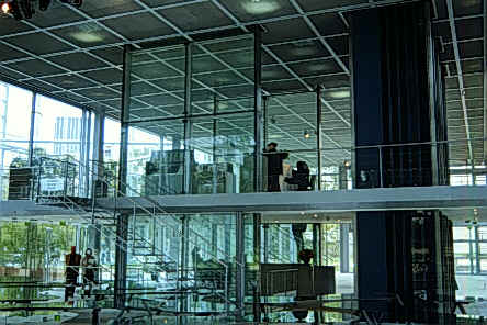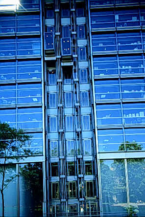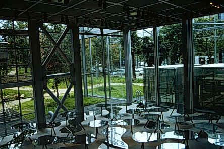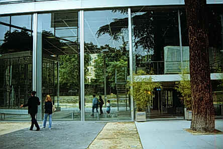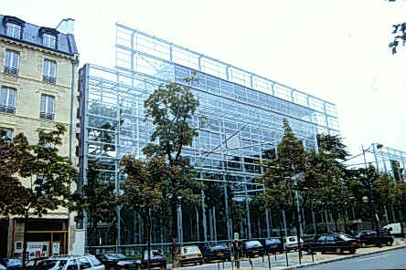 努維爾設計的Fondation Cartier的基地位於我們在巴黎蒙帕那斯(Montparnasse)上課學校的對面。自從巴黎刻苦行的旅程來到巴黎後就深深感覺到巴黎大部份的建築均是屬於年代已久而保留下來的建築物(博物館、美術館、歷史性教堂、廣場、公園……等)不勝美舉,而且努維爾的設計非常重視基地本身、鄰近建築物的歷史性。我覺得這建築物是非常醒目的一片玻璃且立在學校對面而這片玻璃背後又包圍著建築物,而又深具虛體部份;努維爾在這設計案當中除了表現重視建築基地的歷史性外亦利用玻璃和建築物的虛實關係來達到其設計理念,努維爾的高科技手法它的玻璃雖多但在每一個玻璃格子上具有一種幕廉可自動控制來遮陽,且在鋼鐵和玻璃接合處的細部我覺得是努維爾喜歡運用的高科技設計手法,當然這也是我喜歡的一點。