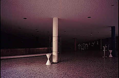 第一個構想就此情景中孕育而生,一個以輕盈帳篷構造覆蓋的開放式劇場;而第二種構想則是將一個金屬屋頂覆蓋在大廳空間,以屋頂的波浪形式觸發對於帳篷的聯想;第三個構想則是設置一個完全不同於海牙都市脈絡的市政中心,這個位於都市角落中的重要部位將駐進新的政府辦公室,這個脈絡將以兩個塔表現,而廢棄的都市高速公路之斜坡,則成為一條指向議會的主要軸線:未來市政廳的基地、一個十七世紀的教堂 – 歷史城市的唯一目擊者。