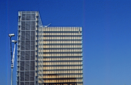 在地面層部份,一至七樓的機能是藏書的書庫,8樓以上則是行政人員辦公的地方。至於外觀形式上象徵四本打開的書,其實每個立面上的每一個構件都可以打開作遮陽的效果。