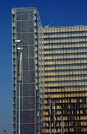 建築師希望利用一些玻璃量體圍繞著一個巨大的中央庭院,因為玻璃建築具有某種透明度,與Perrault希望藉由此呈現圖書館本質的構想,具有某種強而有力的互相呼應。另外,因為玻璃材料的特質,使得此棟玻璃建築物,即使在晚上也一樣非常顯著的代表著崇高的知識性泉源此一象徵性意義。