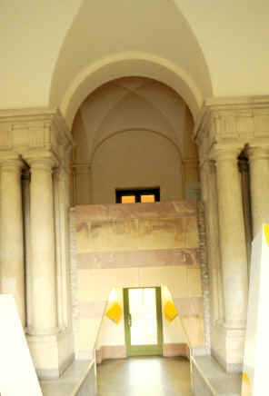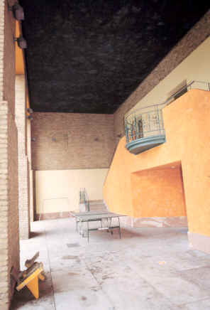 在一個基地中以中庭將許多獨立的建築物加以聯繫的手法是常見的,但在本設計案中中庭的景觀大多由地面層和各樓層的獨立小房間所享用,對於公共空間的開放性如廊道,在社會及管理學會中便無法與中庭產生聯繫。而在各自獨立的建築中所衍生的相互聯繫問題,也是設計的重點,雖然有可以不去做各層聯繫的處理手法,也可以加以串連,但似乎Stirling 對這個問題的考慮欠缺周密,僅僅以簡單的內部廊道在不明顯處加以連結,如此可能會使人們難去分辨方向。