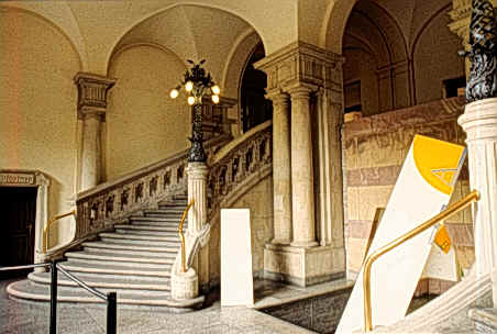 合理的辦公空間通常是像箱子一般平凡的建築,在戰後都市再造所面臨得問題,在於理性但卻單調的大空間辦公建築上,造成了都市中到處可見的破壞,Stirling所提出的想法為考慮建築將來的發展性,所以在配置了三、四棟各自獨立,功能相似但形式卻不同的建築,在這個配置案中各學會間有自我的風格及自明性,而每一個學會基本上有兩個幕僚人員的設置及雙重的人員編制的空間需求,所以每個新建築中都是以對稱為原則,便於符合這個需求。