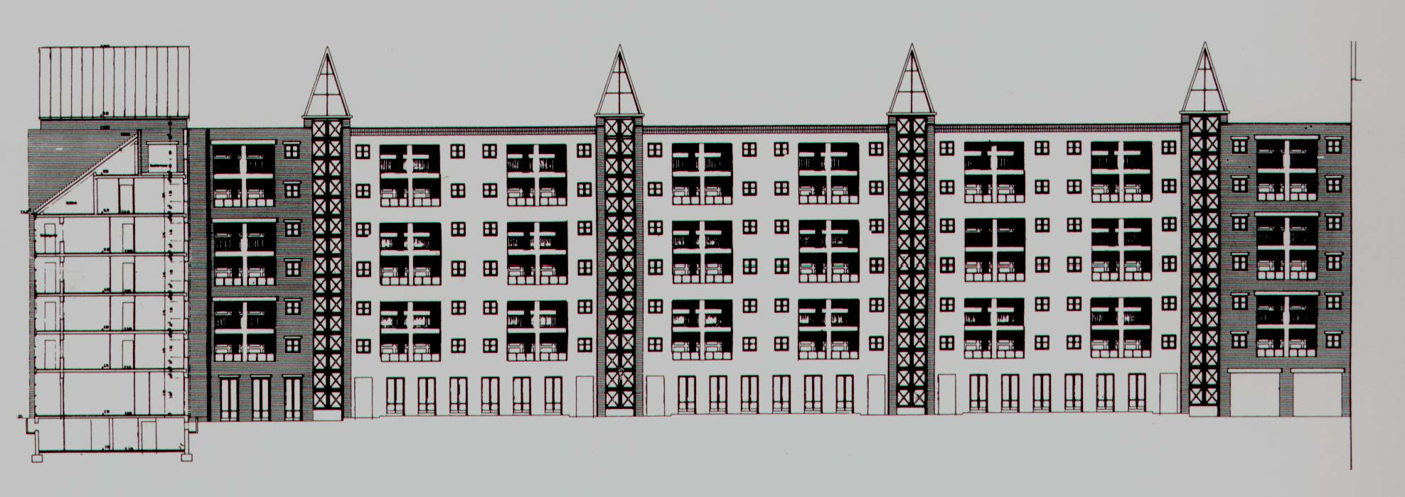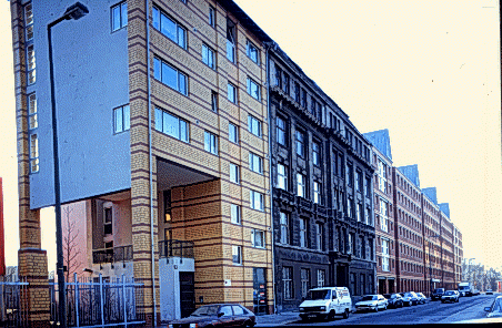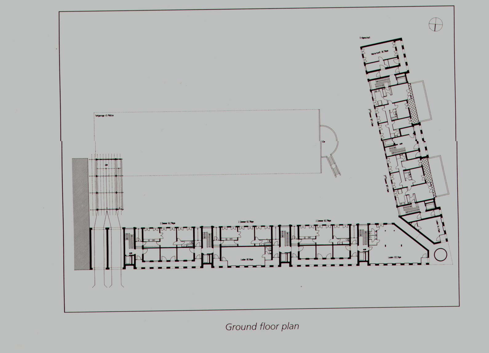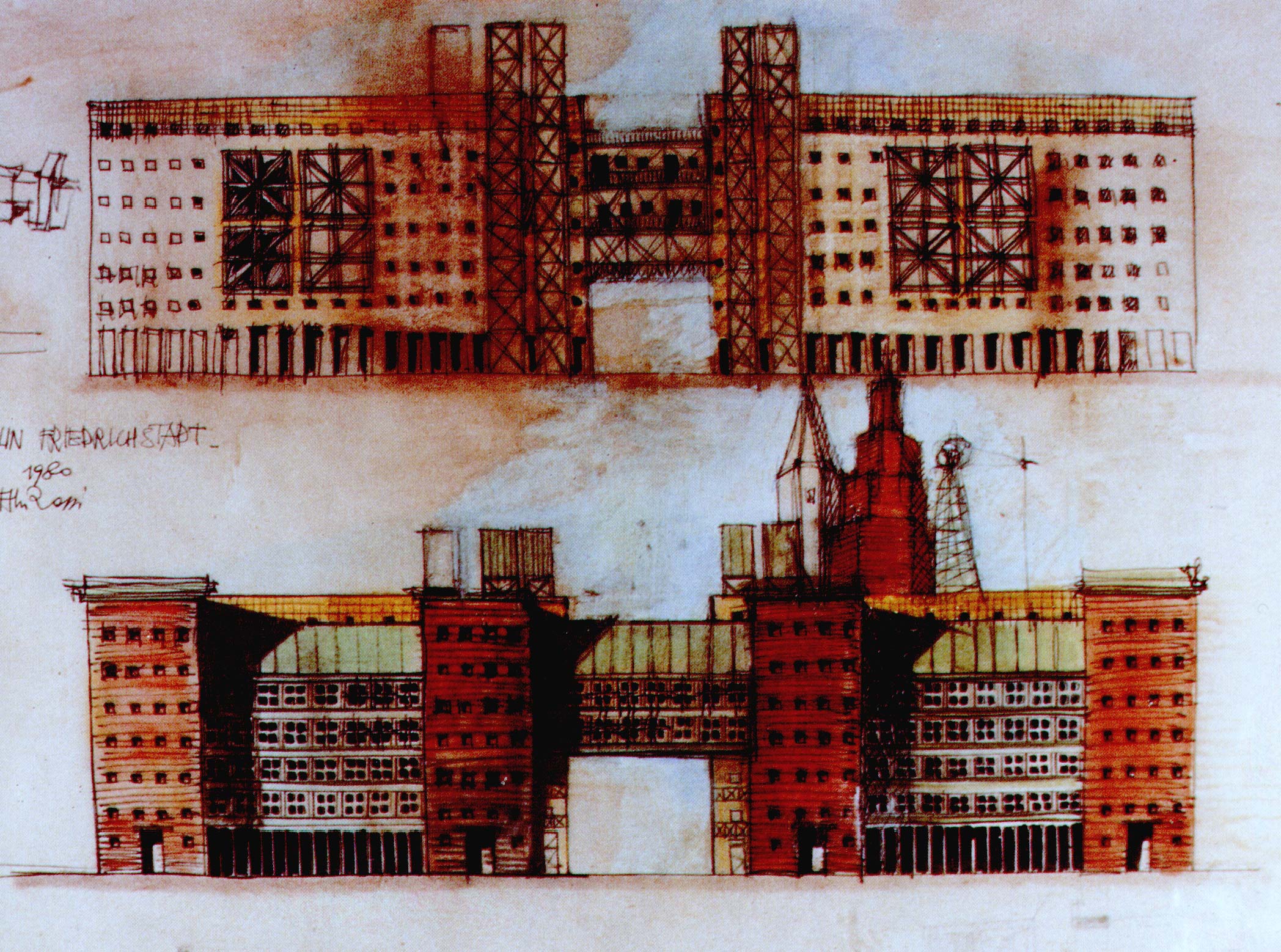 這個涵蓋整個街廓的集合住宅,其不僅要解決住宅需求的壓力,同時要表達此處曾經所發生的事件;而隱含的紀念性基地位於柏林市鄰近剛拆除的柏林圍牆,此方案主要是解決低收入住宅的問題,整個方案分二至三個階段這是第一階段的規畫案。在柏林這個設計遭受了機能與財務上嚴格的限制,同時必須面臨建築基本的問題涵構的尊重與象徵性的意象,這案子是與其他的計畫並行的計畫,其目的是要振興遭受二次大戰破壞的地區。 設計理念: