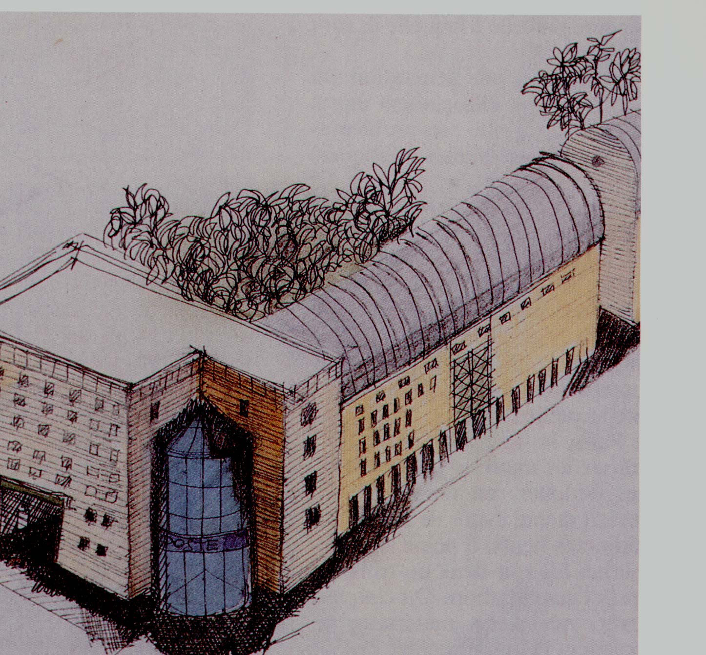 羅西的建築,其在實際顯露的外型及立面下經常隱含著一深厚的理論架構, 也可以說是一種概念與落實之間的一種關係, 而其落實的程度非常地深, 由此草圖及平面示意即可觀出其設計的程度及重點。