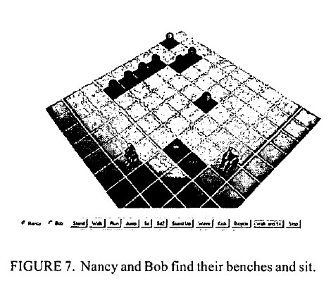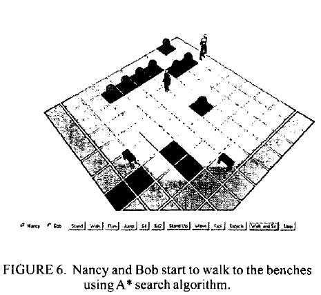 圖6:南茜和鮑伯開始使用A搜索算法走向長凳。 圖7:南茜和鮑伯找到他們的長凳並且坐。
