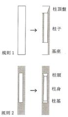 ¦bPalladiaoªº¡m«Ø¿v¥|®Ñ¡n¡]Four Books of Architecture, 1570 ¡^¤¤¡A¤¶²Ð¤F¥Î¦b§O¹Ö³]pªº³W½d©Ê³W«h¦p¤U¡G