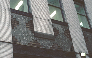 ®白磚凸式窗間壁以紅黑圖案相間隔。