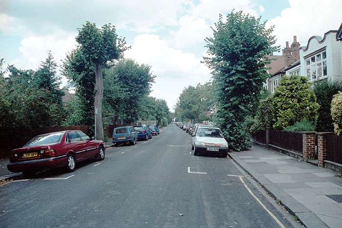 個郊區的花園房屋。房屋前是林蔭大道,及一個非正式的花園,運用磚石來塑造