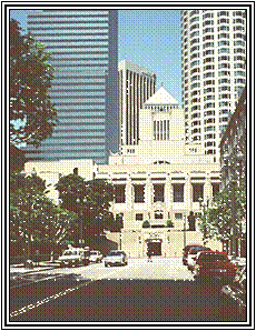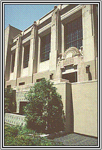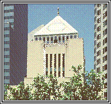 This landmark building, one of the last designed by Goodhue, has a tall central tower, topped by a