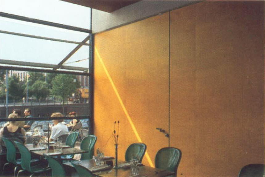 外部空間水池 從咖啡廳與外部水池與光影