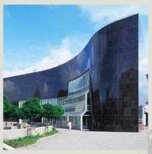 1.以光滑黑色花崗岩來處理美術展覽館性質的立面,並不常見。