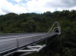 山路  隧道  吊橋  廣場  階梯來醞釀訪者的心情往MIHO路上的桃花林通往桃花源的山洞豁然開朗的館前廣場獲得世界結構工程獎的吊橋