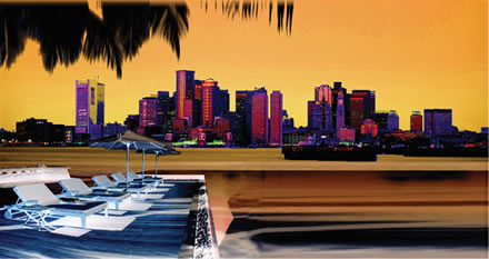 skyline while lying on the beach from the middle