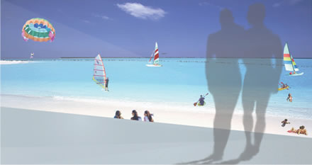 sand, and ocean, the "floating island" will satisfy everyone's