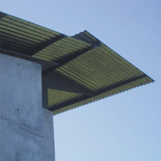 在屋頂面的東向及北向邊緣以鋼構件收邊,鋼構件並與主結構體的混凝土柱牆上部的鋼構件相接 |