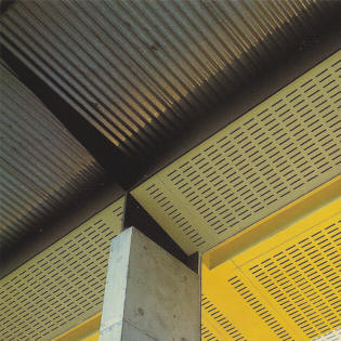 屋頂面以鋼構件收邊 出簷底面細部 室內天花與室外關係細部 |