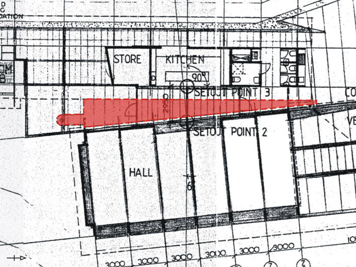 圖42:博藝得藝術中心_連接區落水盤位置示意圖 底圖資料來源:Glenn Murcutt:buildings+projects 1962-2003 |
